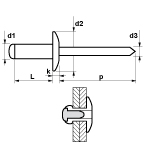 Blindnieten MFX Typ 1032 Flachrundkopf gross Alu / Stahl