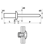 Mehrbereichsnieten FIXI Flachkopf Alu / Stahl 4.8 X 10 - KL 0.3-5.5