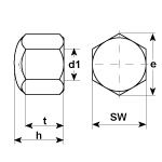 Sechskantmuttern 1 d Messing blank UNI 5587