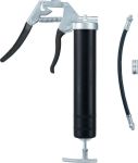 Einhandfettpresse PRESSOL 2014.1 / 500 cm3Robuste Einhandfettpresse für 400 g Kartuschen oder lose Befüllung. Fettpressenkopf aus Zinkdruckguss Z410, demontierbares und bewegliches Schubstangensystem. Ergonomischer, rutschsicherer Handgriff. Die Manschette kann auch bei beschädigten oder nicht masshaltigen Kartuschen eingeführt werden. Schubstange in jeder Position arretierbar - Schubstange muss nicht komplett nach hinten gezogen werden um das Fett vom Druck der Feder freizustellen (Fett verseift nicht). Umstellbar; Hoher Druck oder hohes Volumen, leichte Zerlegbarkeit und Schnellentlüftung.