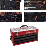 Metall-Werkzeugkasten BAHCO 1483KHD3RB-FF3, 193-teiligBahco 1483KHD3RB-FF3, mit 4 Schaumstoffeinlagen bestückt mit 193 hochwertigen Werkzeugen speziell für Luftfahrtmechaniker - geeignet für Instandhaltungsarbeiten an allen grossen Flugzeugtypen. Strapazierfähiger Metall-Werkzeugkasten mit drei Vollauszug-Schubladen, Schubladen-Sperrsystem für mehr Sicherheit, verstärkter Aluminiumdeckel mit einer Tragfähigkeit von bis zu 70 kg. Der doppelwandige Rahmen schützt die Schienen und Schubladen vor Schlägen und Stössen. Die Schubladen sind verriegelt, sobald die Abdeckung geschlossen wird.