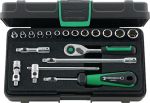 Sechskant-Steckschlüsselsatz STAHLWILLE Quick-Release 1/4" / 19-teilig / 40/13/6QRStahlwille 40/13/6QR, Chrom-Alloy-Stahl, verchromt, QuickRelease Sicherheitsverriegelung, im robusten, stapelbaren ABS-Kunststoffkasten mit PE-Hartschaumeinlage, enthaltend:13 Sechskant-Steckschlüsseleinsätze SW 3.5...13 mm1 QuickRelease-Steckgriff1 QuickRelease-Gleitgriff2 QuickRelease-Verlängerungen 54, 150 mm1 QuickRelease-Kardangelenk1 QuickRelease-Umschaltknarre 415QR N