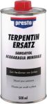 Terpentinersatz presto 0.5 Literpresto Terpentinersatz wird als Verdünnungsmittel für handelsübliche Kunstharzlacke, Holzlasuren, Rostschutz- und Vorstreichfarben eingesetzt. Hinweise des Lackherstellers beachten. Im Zweifelsfall bitte Vorversuch durchführen. Weiterhin löst es Verschmutzungen von Arbeitsgeräten, Holz- sowie Linoleumböden.Qualität und Eigenschaften:zum Verdünnen von Öl- und Kunstharzlacken, Holzlasuren, Rostschutz- und Vorstreichfarbendient auch zum Säubern von Pinseln, Rollern und Streichgerätenideal auch zum Entfernen von Farb- und Schmutzflecken von Parkett, Linoleum und lösemittelunempfindlichen Boden