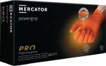 Einweg-Nitril-Handschuhe MERCATOR gogrip orange MEinweghandschuhe aus Nitril, Farbe orange, ungepudert, Aussenfläche aus Diamanttextur, Wandstärke Finger 0,26 mm, die einzigartige, rutschfeste 3D-Textur sorgt für aussergewöhnliche Griffsicherheit auch unter schwierigen Arbeitsbedingungen. Dank der innovativen pyramidenförmigen Textur gewährleisten die Handschuhe einen festen Griff an jedem Werkzeug. Die Luft kann im Inneren des Handschuhs zirkulieren, sodass die Hände deutlich weniger schwitzen und nicht so schnell ermüden. Die Handschuhe verhindern die Übertragung von Verunreinigungen von den Händen der Mitarbeiter/Innen auf die Lebensmittel sowie von den Lebensmitteln auf die Hände des Benutzers. Mobilgeräte können unter allen Bedingungen mühelos bedient werden, ohne dass die Handschuhe während der Arbeit ausgezogen werden müssen.CE Kategorie IIEN 374-1, EN 374-2, EN 16523-1, EN 374-4 - Schutz gegen ChemikalienEN 374-5 - Schutz gegen InfektionserregerLebensmittelhandschuheDispenserbox à 50 Stück