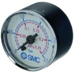 Manometer SMC mit Doppelanzeige G1/8"Universalmanometer mit Doppelanzeige MPa, barGenauigkeitsklasse: 3% vom SkalenwertMontage hinten mittigRoHS-konformGeeignet für gasförmige und flüssige Medien, die Kupferlegierung nicht angreifen.