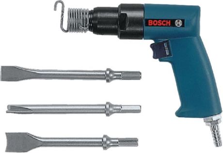 Druckluft Meisselhammer-Satz BOSCH 501kälteisolierendes, robustes Polyamidgehäuse, hochwertiges Schlaggehäuse für geringen Verschleiss, hoher Griffkomfort, leistungsfähiger Linearmotor, Abluft durch Griff. Muss mit geölter Luft betrieben werden.