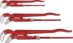 Eck-Rohrzangensatz NERIOX 3-teilig, 1", 1 1/2", 2"Satz mit 3 Zangen, Chrom-Vanadium-Stahl, schwedische Form, S-Form, rot pulverlackiert, verchromte Stellmutter, Maul poliert, Zahnung zusätzlich induktiv gehärtet.