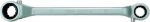 Doppel-Ratschenringschlüssel 12x14Chrom-Vanadium-Stahl, verchromt, satiniert. Robuste Ratsche mit 72 Zähnen, umschaltbar. 12-Kant-Ringe 75° gekröpft, mit Flank Traction-Profil.