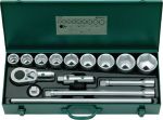 Sechskant-Steckschlüsselsatz STAHLWILLE 3/4" / 15-teilig / 55/9/6NStahlwille 55/9/6N, Chrome-Alloy-Steel, verchromt, in Blechkasten mit PE-Hartschaumeinlage, enthaltend:9 Sechskant-Steckschlüsseleinsätze 32...60 mm1 Umschaltknarre 5521 Handgriff1 Winkelgelenk1 Gleitkopf2 Verlängerungen 200, 400 mm