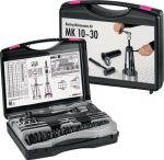 Montage- und Abziehersatz simatool MK 10-30simatool Kombiwerkzeug für den Ein- und Ausbau von Lagern.Es ermöglicht eine schnelle, präzise und sichere Montage und Demontage der meisten gängigen Lager.Für die Montage ist ein vielseitiges Montagewerkzeug mit Schlagrohren und passenden Schlagringen enthalten, das sowohl für den Einbau von Lagern mit einem Bohrungsdurchmesser von 10 bis 30 mm sowie von Buchsen, Dichtungen, Riemenscheiben oder ähnlichen Teilen geeignet ist. Für die Demontage ist ein dreiarmiger Lagerabzieher enthalten. Mit den fünf angebrachten Abzieharmsätzen passt der Abzieher sogar auf Lager mit einem Bohrungsdurchmesser von bis zu 85 mm.-Der Werkzeugkoffer enthält:-Für Wellendurchmesser von 10–30mm-Das Set enthält 21 Schlagringe, 2 Schlagrohre, 1 rückschlagfreien Hammer, 1 Gleithammer, 2 Spindeln, 5 Sätze mit je 3 Abzieharmen, 7 Stützscheiben, 1 Gegenhalter-Kompaktes Werkzeugset inkl. Auswahltabelle in handlichem Koffer