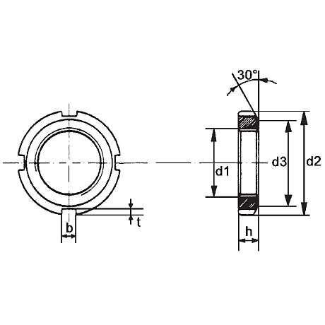 Écrou à encoches acier cl. 5 brut DIN 981