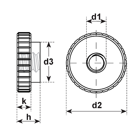 Ecrous moletés acier zingué-bleu DIN 466 5