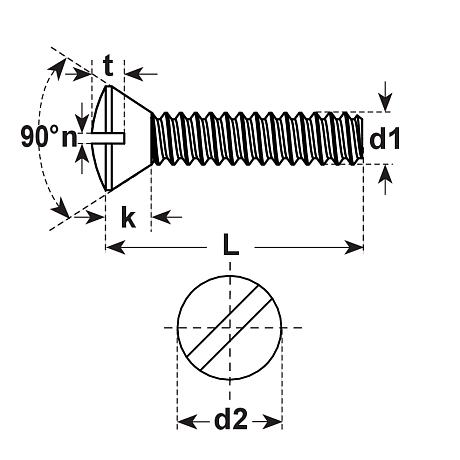 Vis LSK 90° fente acier 4.8 zingué-bleu DIN 964