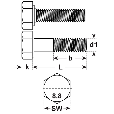 Vis à tête hexagonale acier 8.8 zingué-bleu UNF
