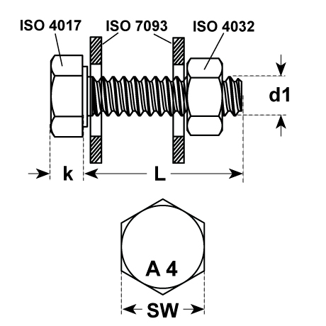 - Avec 1 écrou six pans INOX A4-70 ISO 4032