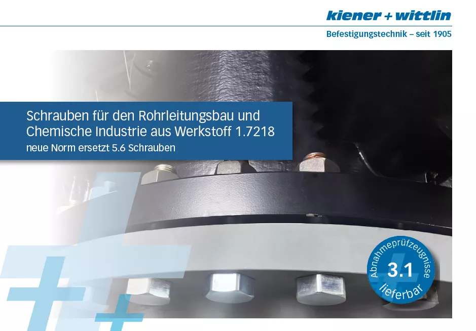 Les produits sont conformes aux normes harmonisées EN 1515-4, EN 13445-2 et EN 13480-2. Les marquages avec le symbole du matériau « KG », correspondant à 25CrMo4, ainsi que les indications du fabricant et du lot permettent une traçabilité des vis et des écrous et peuvent servir de substitut de certificat. Ces éléments représentent également un aspect de sécurité important dans l’industrie chimique.