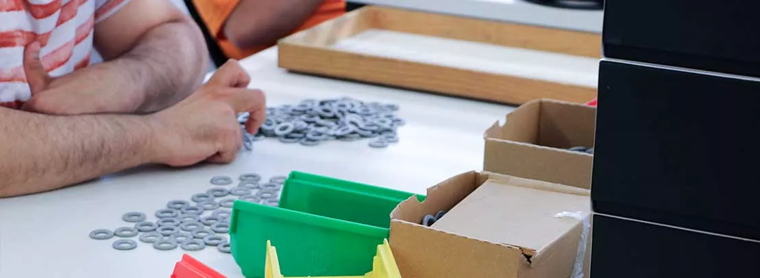 des personnes ayant besoin de soutien assument chez nous des tâches importantes dans le contrôle et la confection de nos ensembles HV kiener + wittlin selon la norme EN 14399-1.