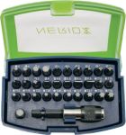 Set di punte NERIOX 32 pezzi32 pezzi, in pratica scatola di plastica, con 30 punte 1/4" C 6.3, 1 supporto per bussole 1/4" - C 6.3 e 1 supporto per punte a cambio rapido 1/4" E 6.3.