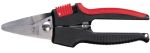Forbici multiuso COMBINOX 190Progettate per l'industria e il commercio, tagliano carta, cavi, fili, cartone, plastica, lamiere sottili, tessuti, ecc.; manici ergonomici con inserti in materiale morbido, tutte le parti metalliche in acciaio inox, con barra di bloccaggio, spelafili per cavi di sezione 1 e 1,5 mm2, lama affilata con tacca guidafili.