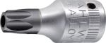 Inserto per viti TORX® STAHLWILLE T8Stahlwille44KTXB, acciaio legato al cromo, cromato, con foro nella punta, per viti Torx® interne con perno di bloccaggio, lunghezza 28 mm.