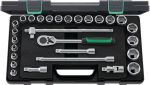 Set di chiavi esagonali STAHLWILLE 1/2" / 28 pezzi / 52/22/6Stahlwille52/22/6, in acciaio legato al cromo, cromato, con chiusura di sicurezza QuickRelease, in robusta valigetta impilabile in plastica ABS con inserto in schiuma rigida PE, contenente:22 bussole esagonali 8...32 mm1 impugnatura scorrevole 5063 prolunghe 75, 130, 255 mm1 giunto universale 5101 cricchetto reversibile 512