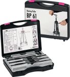 Set di estrattori per cuscinetti a sfere simatool BP 61simatool BP61 per la rimozione efficiente di cuscinetti a sfere a gola profondaL'estrattore di cuscinetti consente la rimozione di cuscinetti a sfere a gola profonda. Un vantaggio significativo è che non è necessario rimuovere l'albero - Per diametri dell'albero da 10 a 100 mm - Il set contiene 2 mandrini, 6 set di 3 bracci estrattori ciascuno, 1 controdado - Set di utensili compatto, compresa la tabella di selezione, in una comoda valigetta