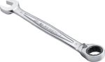 Chiave a cricchetto combinata FACOM 6Facom467B, acciaio al cromo vanadio, cromato, finitura satinata. Lato dell'anello inclinato di 15°; sistema a cricchetto reversibile integrato nella testa compatta dell'anello. Standard ad alte prestazioni, adatto per connessioni a vite nel settore aeronautico. Forma sottile, quindi molto adatta anche a spazi stretti e angusti; angolo di ritorno di soli 5°.