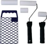 Set di rulli per pittura 5 pezzi Set di 5 pezzi composto da: 1 rullo Moltopren 10 cm, 1 rullo di ricambio 10 cm, 1 rullo Moltopren 5 cm, 1 rullo di ricambio 5 cm, 1 griglia raschiante