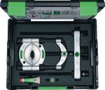 Set di dispositivi di separazione ed estrazione KUKKO 17-KInL-BOXX per l'allentamento di cuscinetti a sfera, ruote dentate, ecc. dove non c'è spazio per i ganci. Set con separatore, estrattore e coppia di prolunghe.