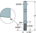 Fresa angolare in metallo duro integrale CoroMill® Dura COROMANT, 2xD Ø6,0 x RE 0,50