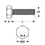 Viti a testa esagonale in acciaio ZB DIN 933 10.9
