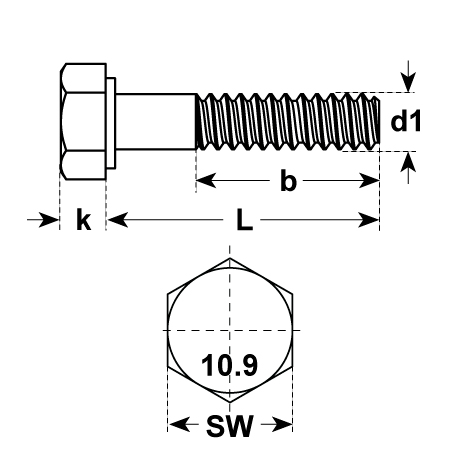 Viti a testa esagonale in acciaio ZN DIN 933 10.9
